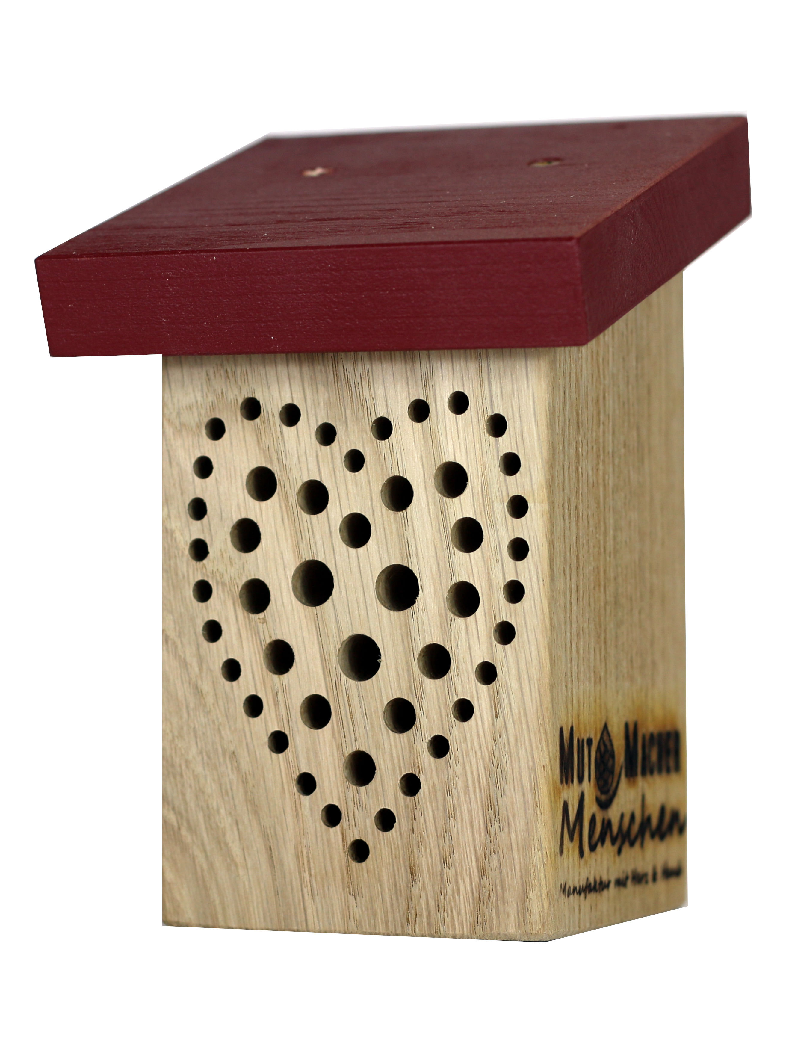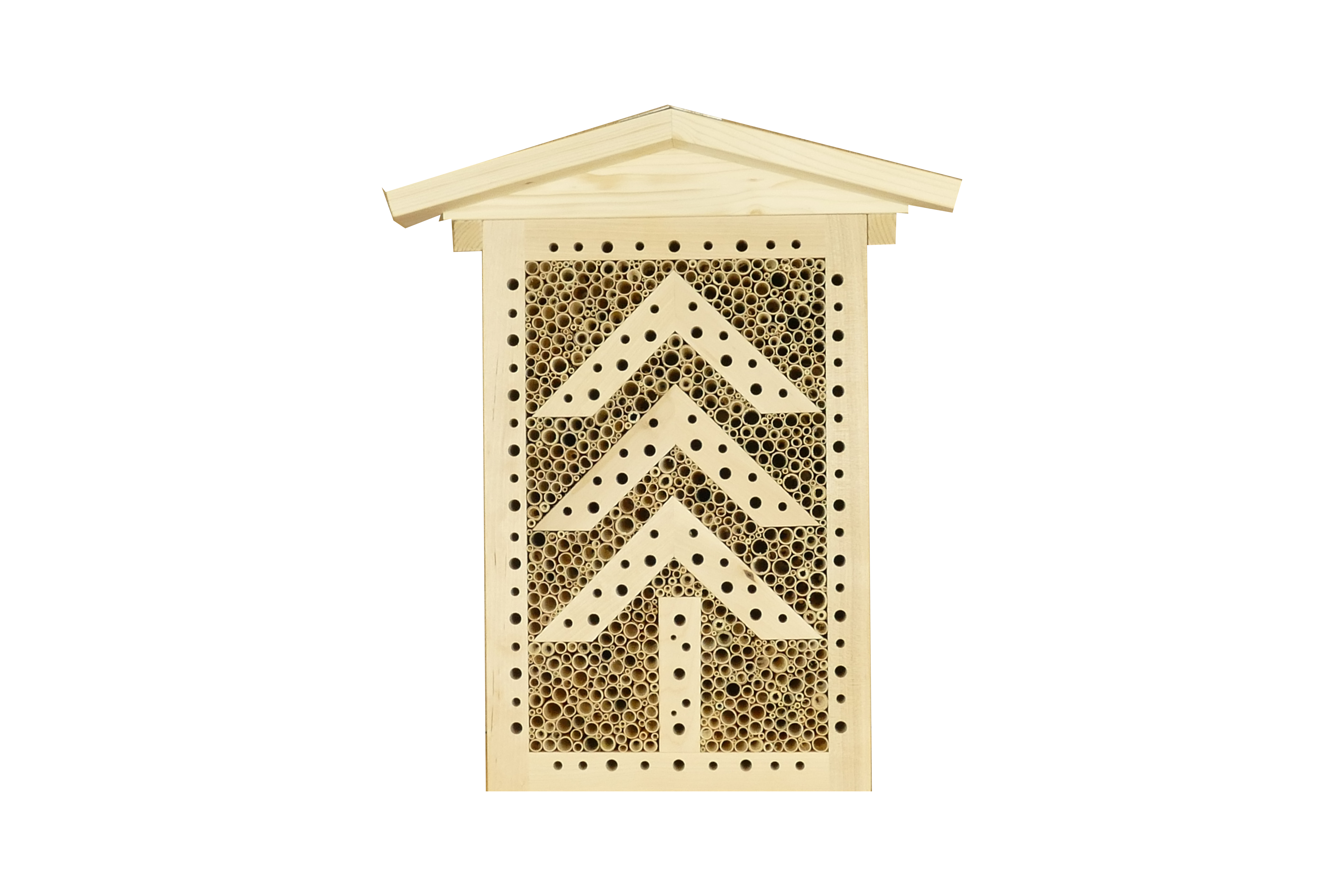 Wildbienenhäuser sind eine nützliche Ergänzung für naturnahe Gärten und helfen den Bestand an Bestäubern unserer Kulturpflanzen zu erhalten. Wildbienen und andere Nützlinge legen die Brut in die Löcher und Röhrchen dieser Nisthilfe. Die verschiedenen Durchmesser der Löcher werden von unterschiedlichen Insekten bevorzugt.